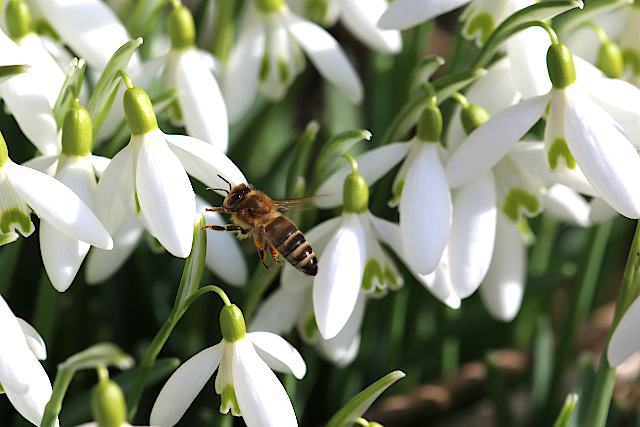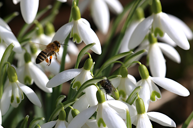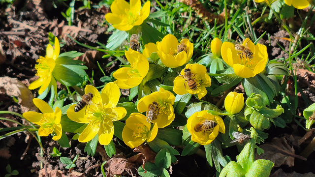 Schon Mitte Januar waren die Bienen bei kühlen Temperaturen unterwegs um Pollen zu sammeln. Das rare Blütenangebot von damals, ist gut einen Monat später deutlich umfangreicher geworden. Es blühen die Hasel, Winterlinge, Schneeglöckchen und Krokusse. Die Bienen sind in ihrem Element.